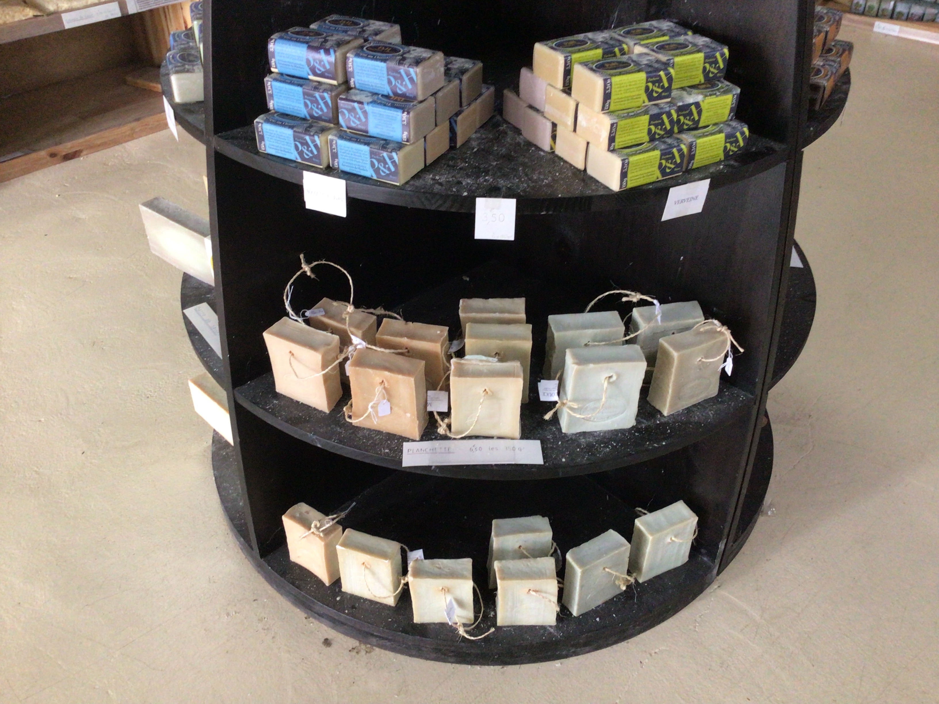 Savons de très bonne qualité. Des huiles d'olives et autres accessoires