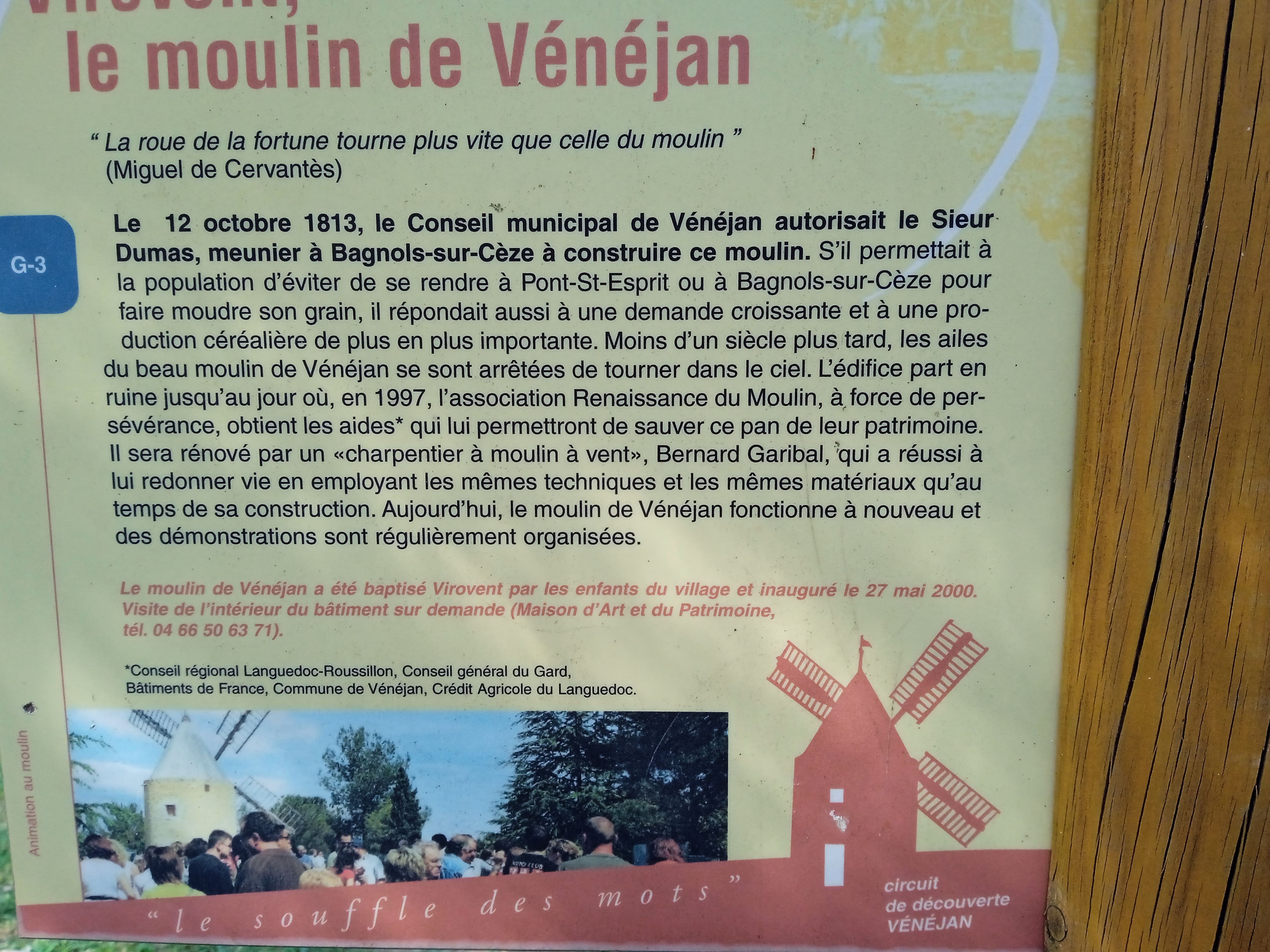Un très joli village.Le moulin de Vénéjan a très bien été restauré. Un beau point de vue sur les environs.Une jolie balade.