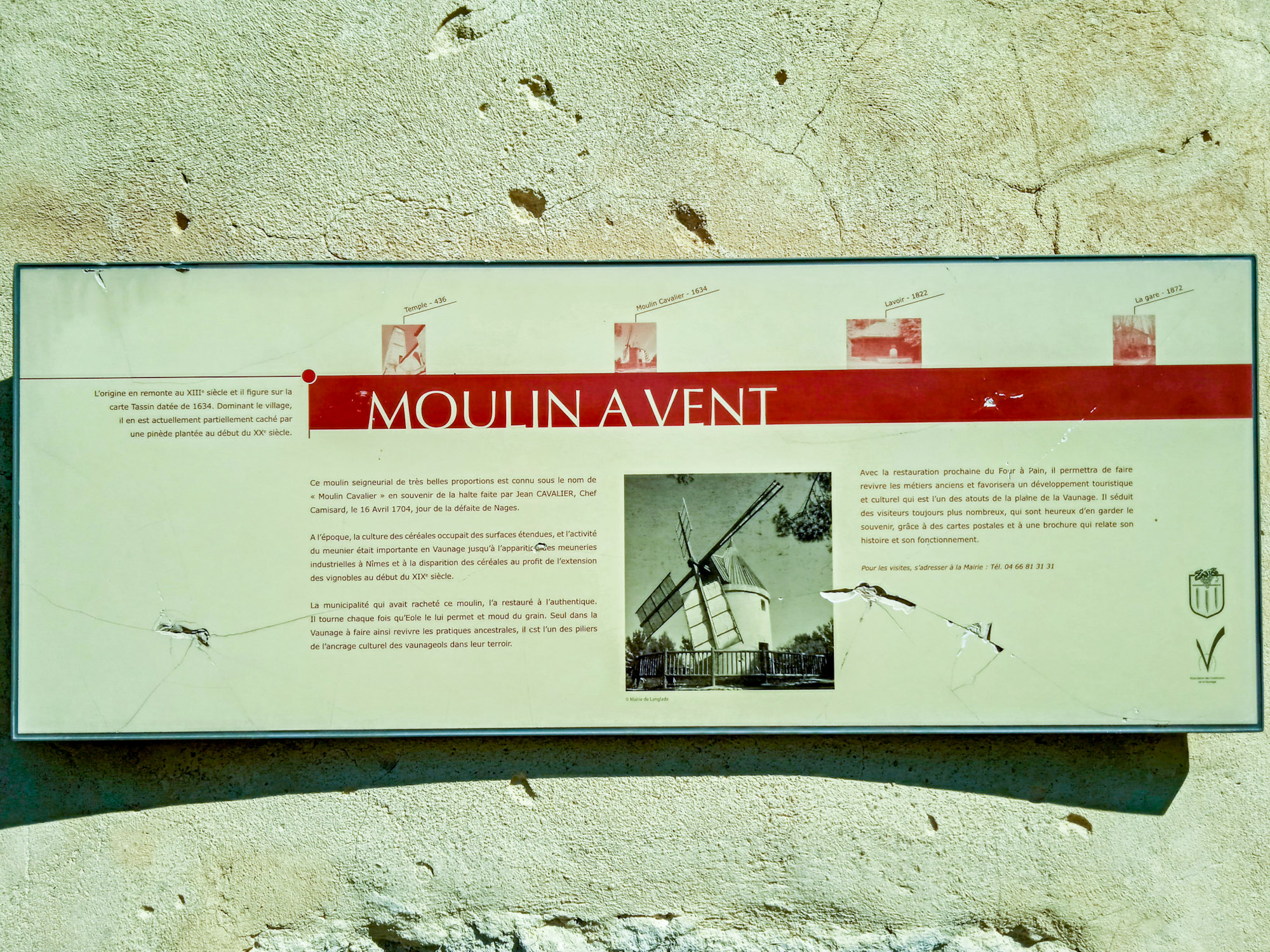Très beau moulin, bien entretenu. Vue magnifique sur le village et la Vaunage. Autour du moumin, bel espace pour différentes manifestations. Moins arboré qu'avant, en attendant que ça repousse !