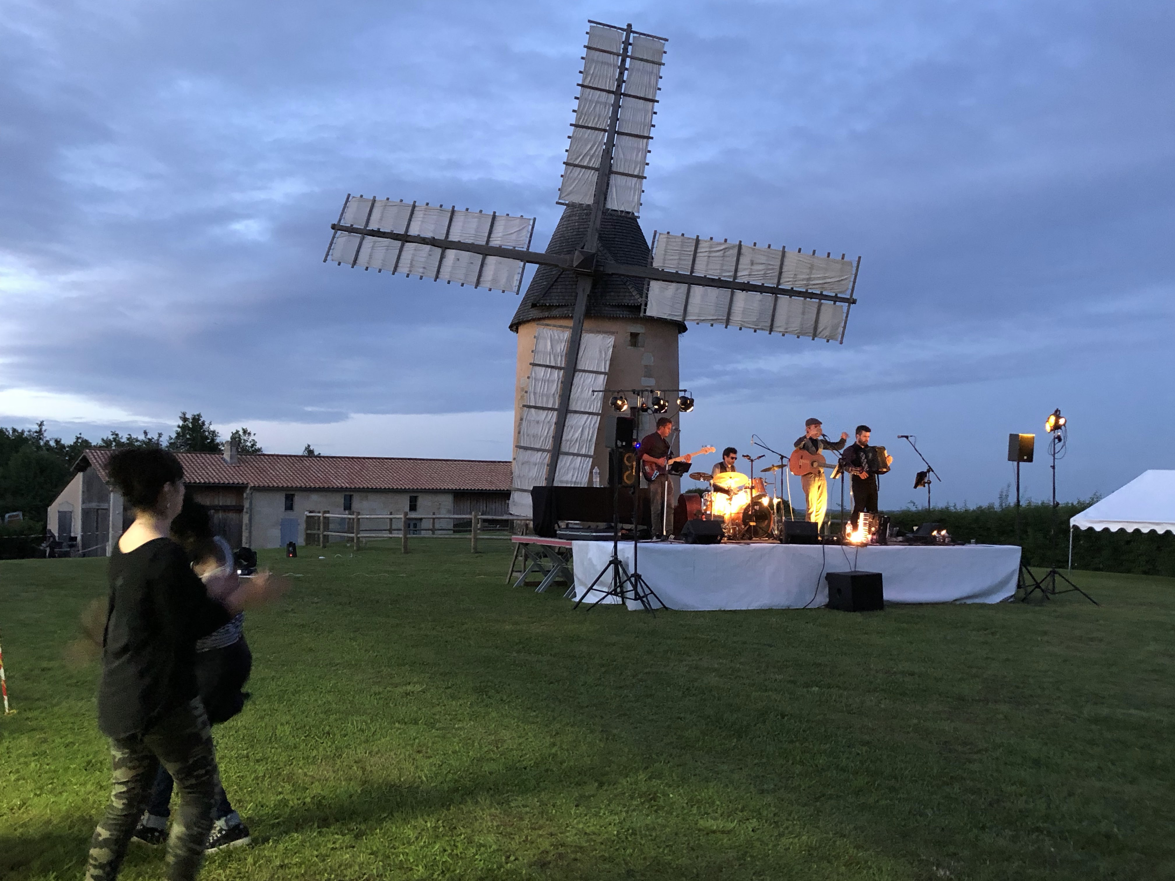 Très beau moulin illuminé durant la fête du moulin et le feux d'artifice rend vrement bien derrière le moulin