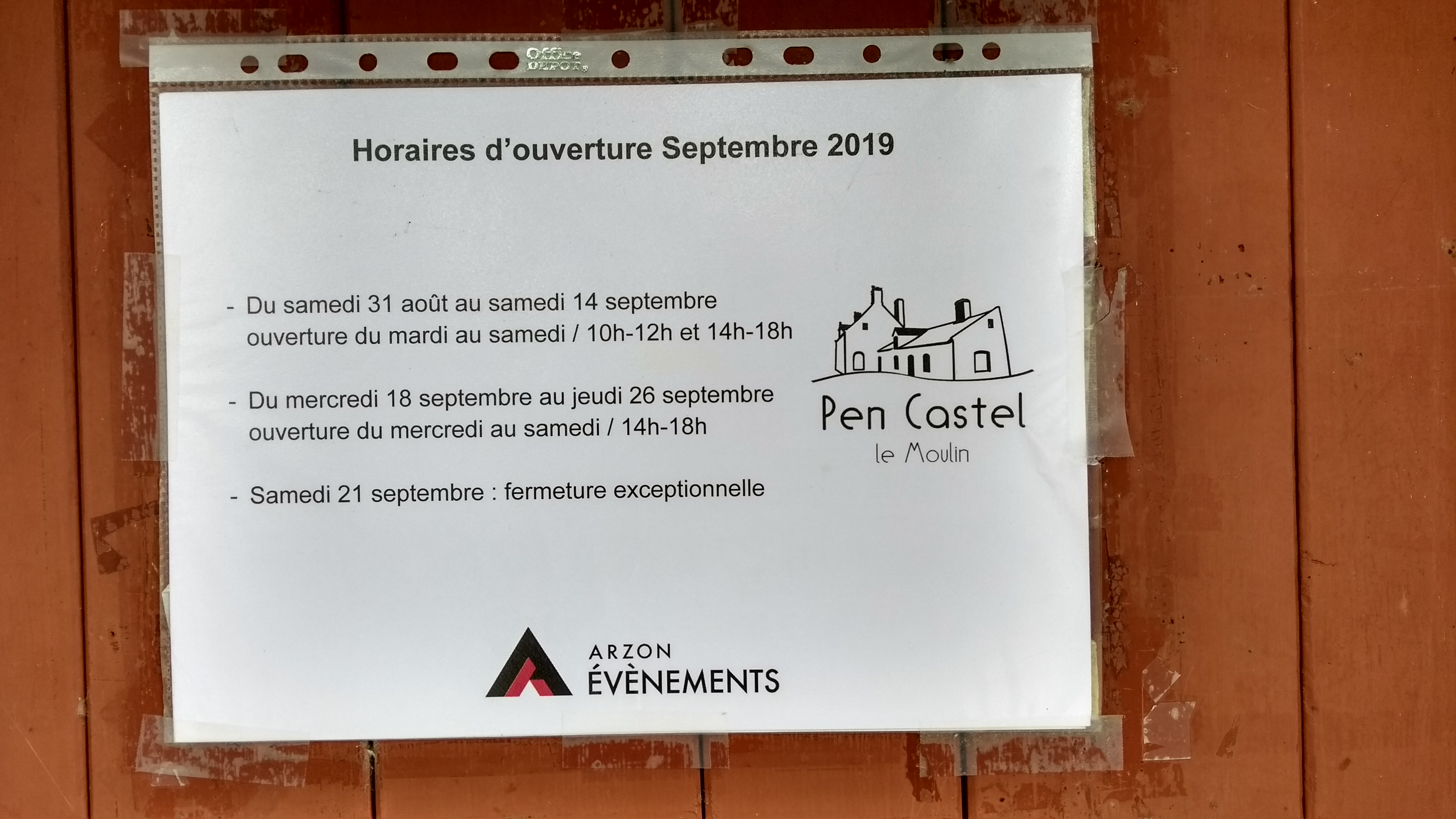 Inadmissible ! Samedi après-midi dernier journée du patrimoine nous sommes allés au moulin de Pen Castel. La visite en était impossible. Le moulin était fermé exceptionnellement au public, car visiblement occupé pour une « réunion privée ». Regrettable le jour du patrimoine.