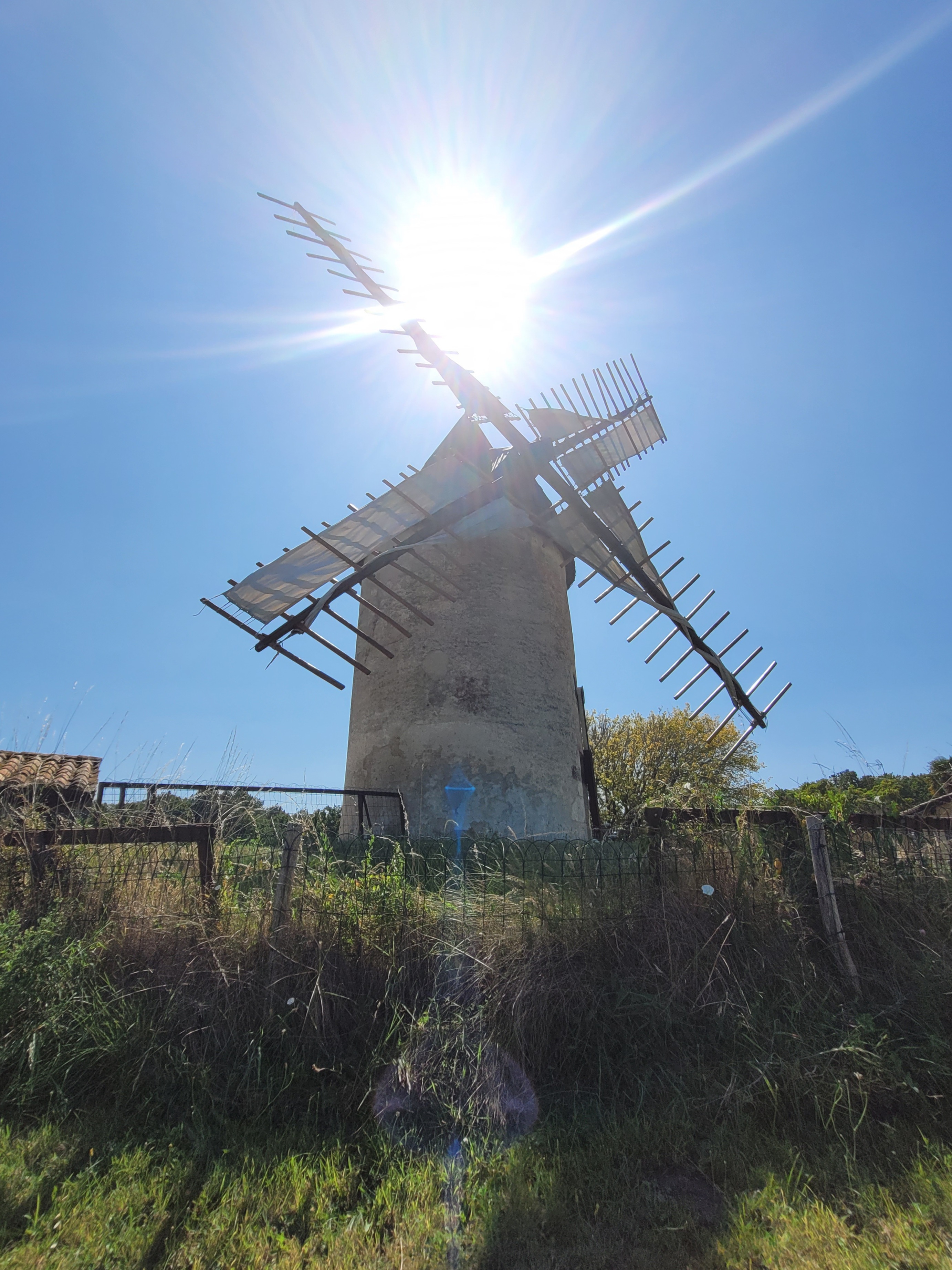 Un moulin à vent qui produit de la farine à partir de l’énergie éolienne, c’est dans l’air du temps. Sauf que le moulin de Vensac est tout sauf écologique : ses ailes sont mues non par le vent mais par un tracteur, astucieusement dissimulé derrière le moulin dont il est relié par un axe rotatif. La plupart des touristes n’y voient que du feu, se souvenant avec émotion du bon vieux temps. Mais quand le vent est à l’Ouest on respire aussi mal qu’en ville aux heures de pointe ! Ce moulin est donc une aberration écologique et je serais curieux de connaître le nombre de litres de carburant brûlés chaque été pour les beaux yeux des visiteurs
